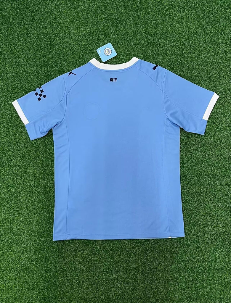 La camiseta local del Manchester City 25-26 mantiene su icónico azul cielo con un diseño elegante y actual, reflejando el estilo y la ambición del club.